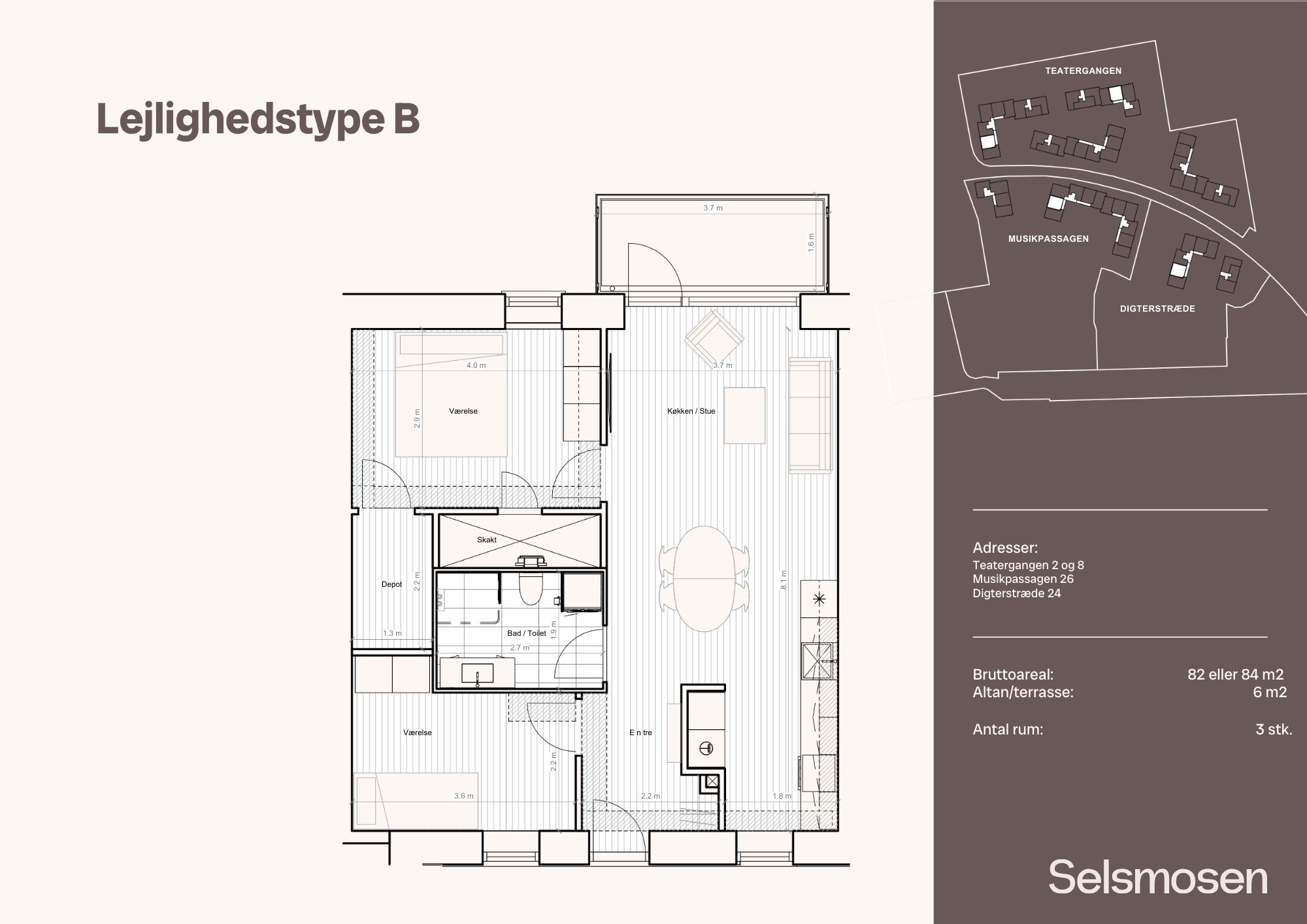 Bemærk at billederne kan være af en tilsvarende boligtype, hvorfor vi henviser til plantegningen og altid opfordrer til du oplever lejemålene ved selvsyn. Materialerne er dog de samme i alle enheder, med små variationer.
