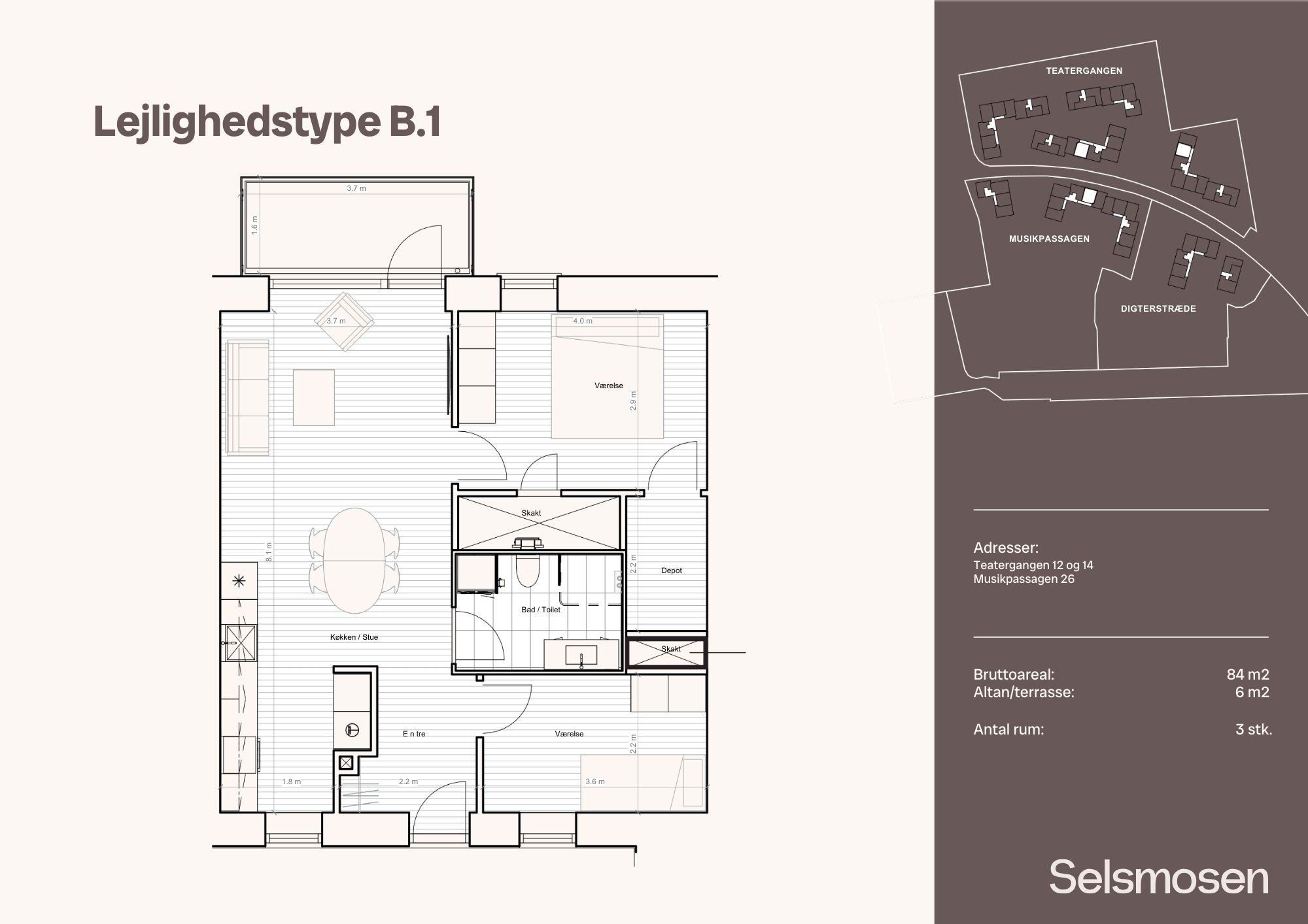 Bemærk at billederne kan være af en tilsvarende boligtype, hvorfor vi henviser til plantegningen og altid opfordrer til du oplever lejemålene ved selvsyn. Materialerne er dog de samme i alle enheder, med små variationer.