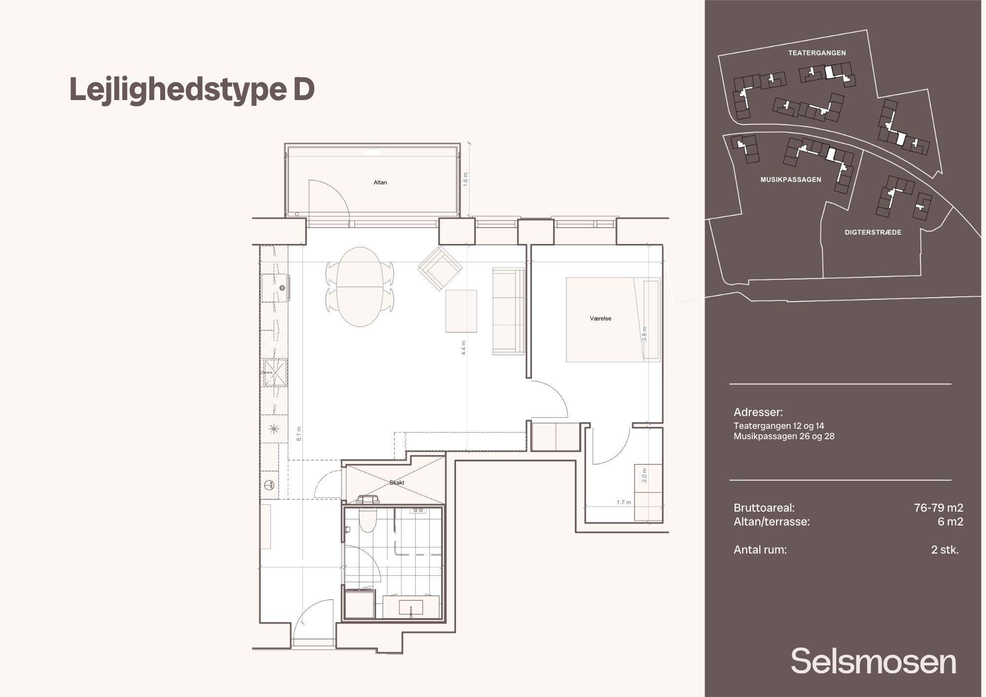Bemærk at billederne kan være af en tilsvarende boligtype, hvorfor vi henviser til plantegningen og altid opfordrer til du oplever lejemålene ved selvsyn. Materialerne er dog de samme i alle enheder, med små variationer.